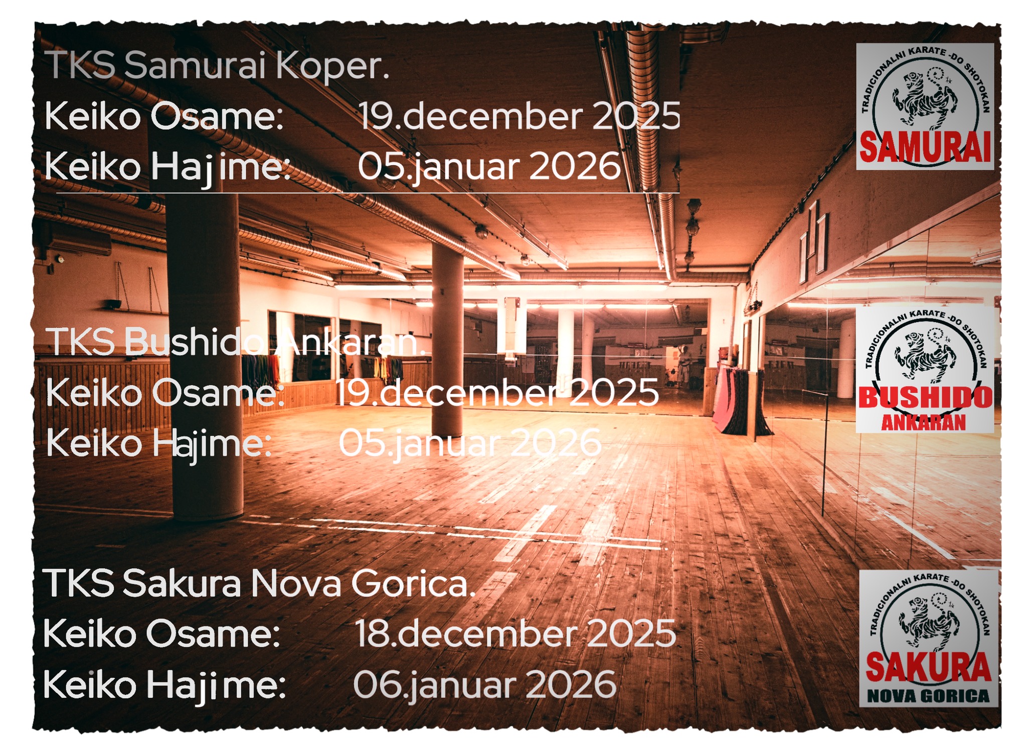 PreberiZadnja in prva vadba za TKS Samurai Koper, TKS Bushido Ankaran in TKS Sakuro Nova Gorica!