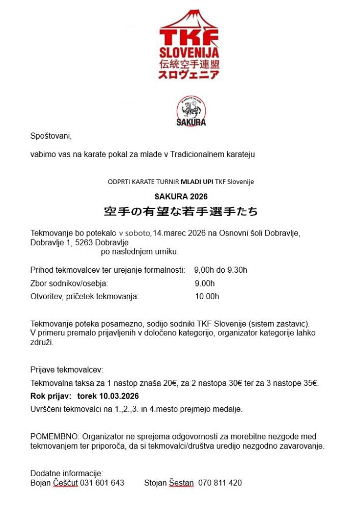 ODPRTI KARATE TURNIR TKF SLOVENIJE – SAKURA 2026